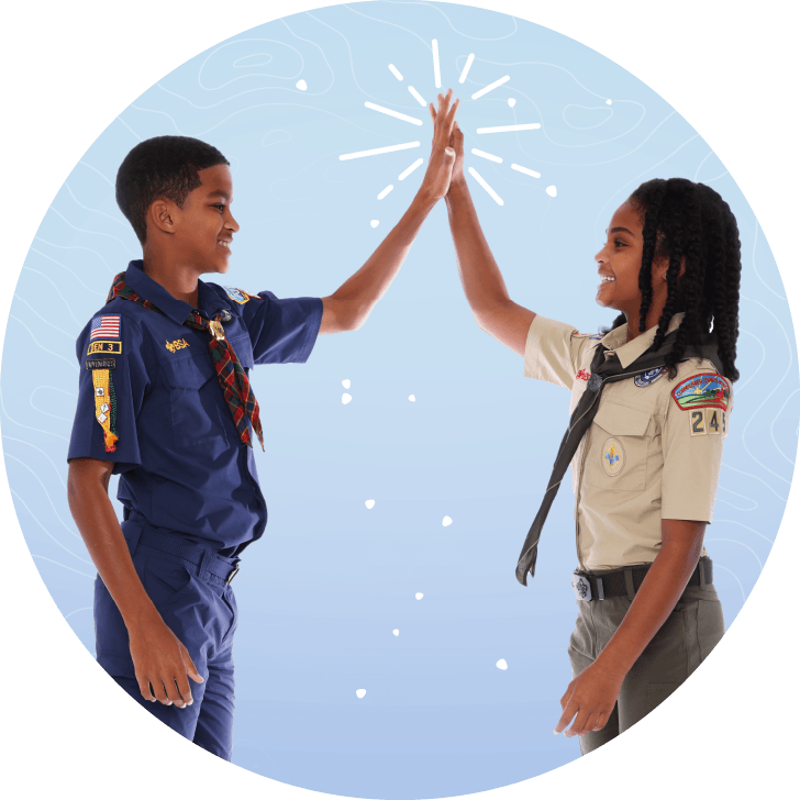Fifth graders work toward the Arrow of Light rank. Colors feature olive green and tan.